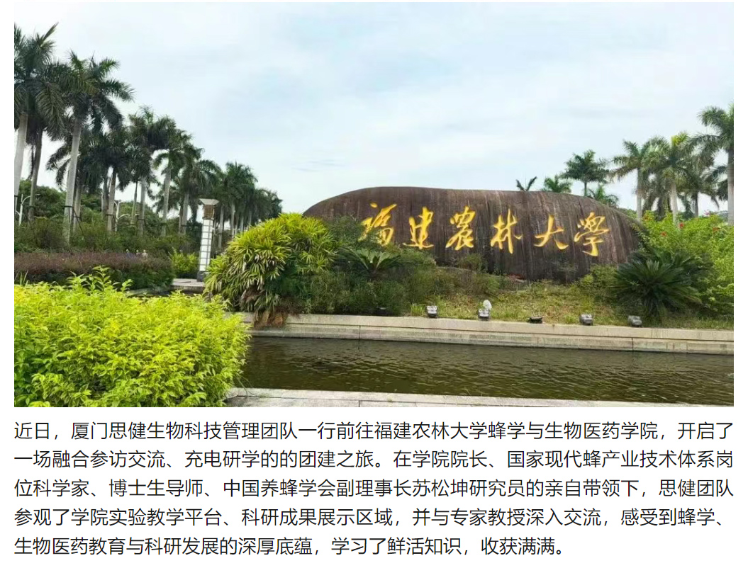思健管理團(tuán)隊赴福建農(nóng)林大學(xué)蜂學(xué)與生物醫(yī)藥學(xué)院團(tuán)建研學(xué)
